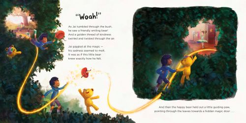 Pudsey takes Jai on a magical journey to meet Maya, Ricky, Tomash, Remi and Ellie. All children who have been supported by Pudsey’s kindness; and who are connected by the golden thread of hope.